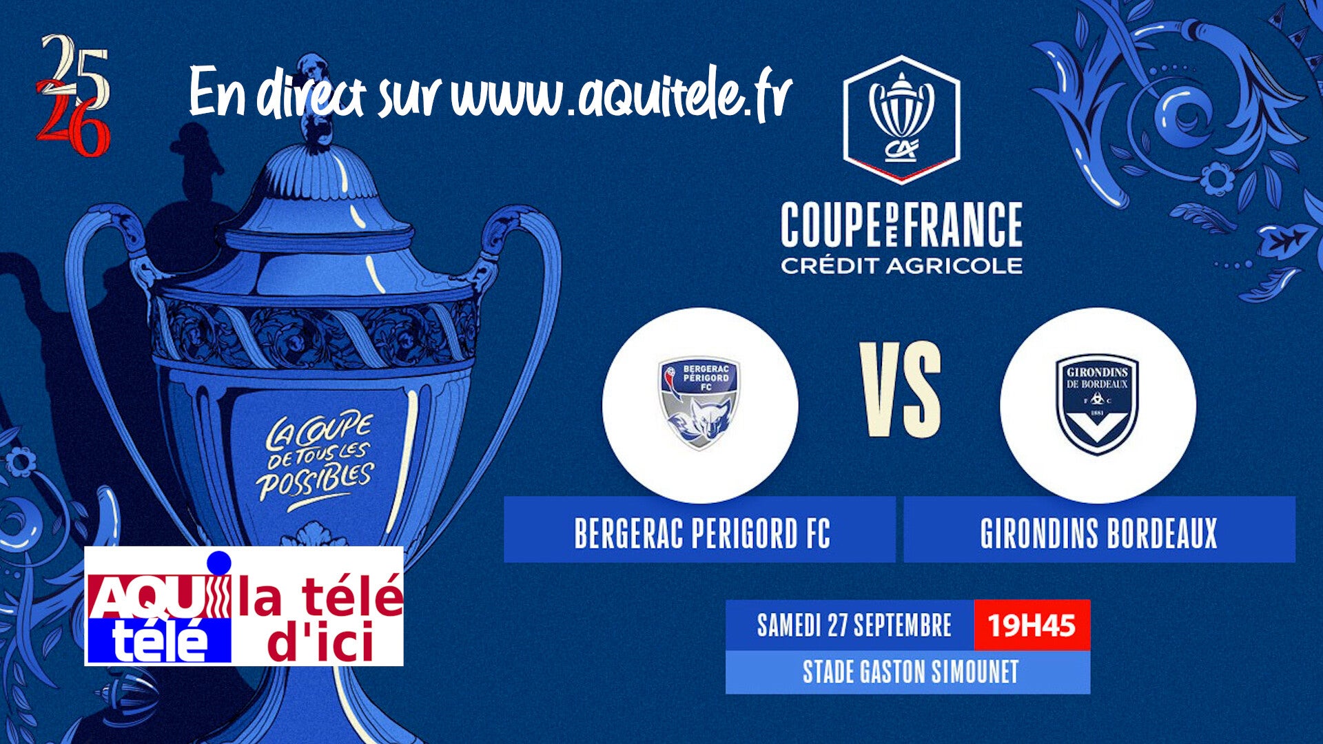 Alors que le match de Coupe de France ne devait pas être diffusé, Aquitelé a annoncé sur Facebook qu'ils retransmettraient le match Bergerac face aux Girondins de Bordeaux ce samedi 27 septembre à partir de 19h45.