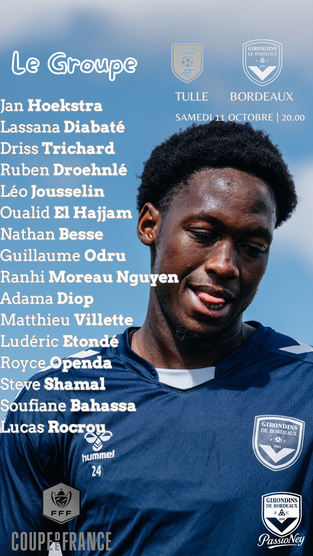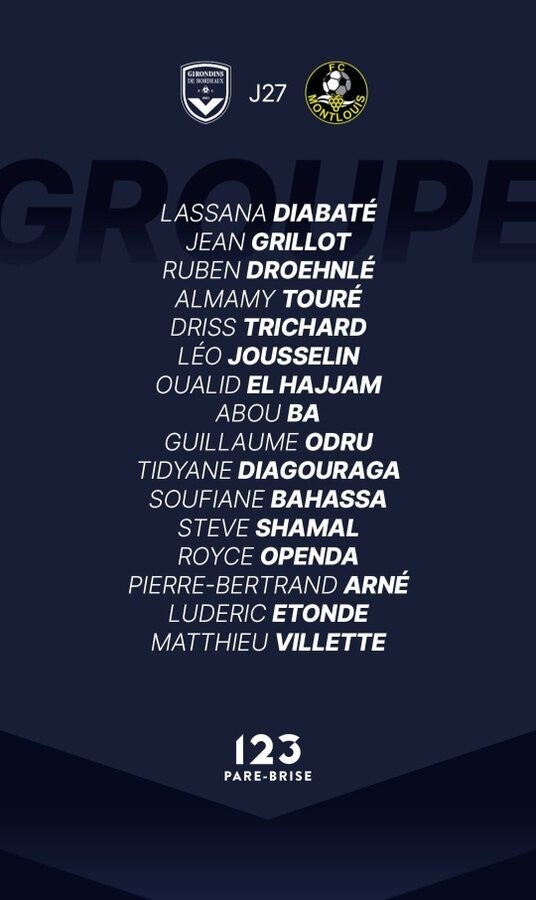 Le groupe des Girondins de Bordeaux en Coupe de France qui affronte Tulle, avec Adama Diop et la première apparition pour Lucas Rocrou