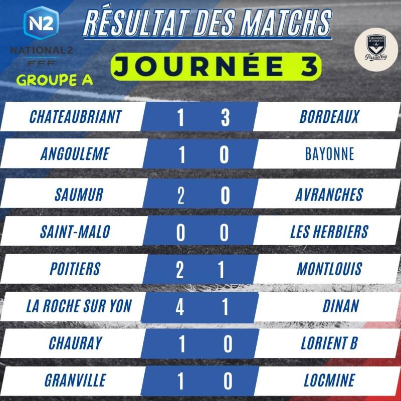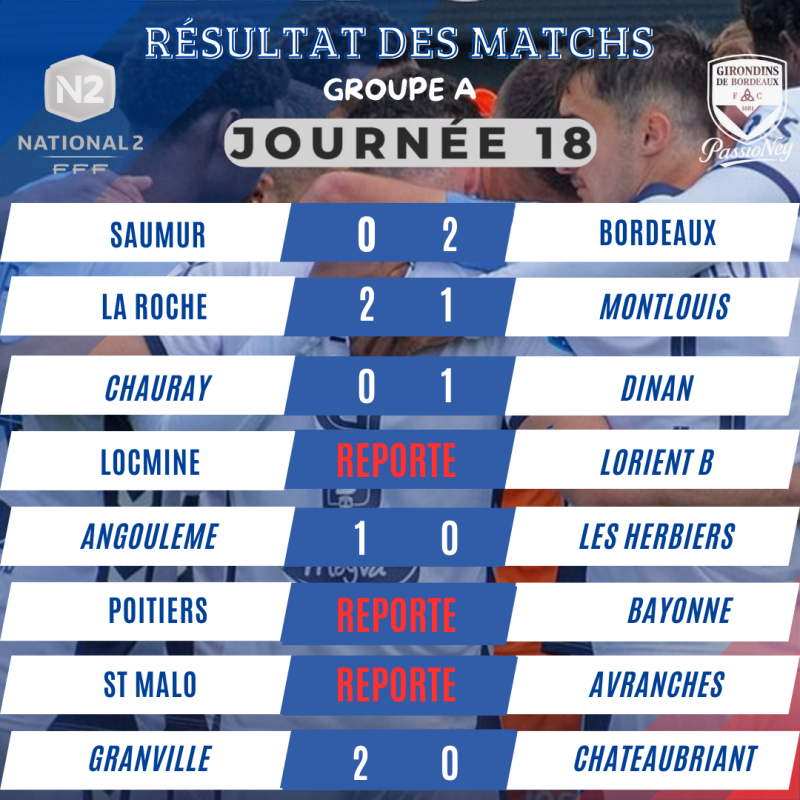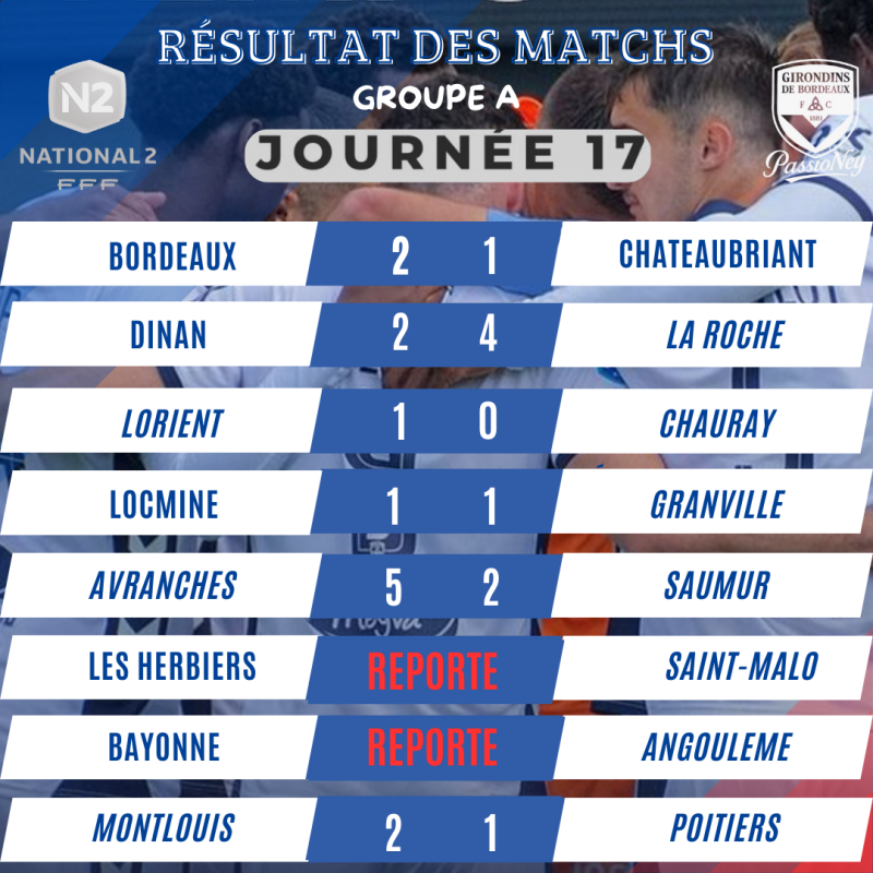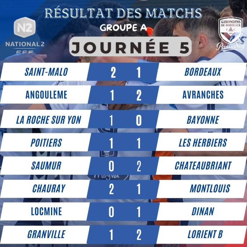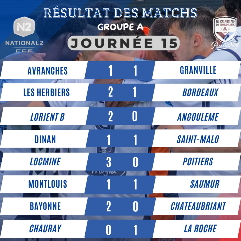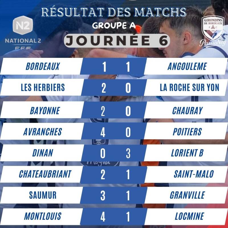 Résultats Matchs N2 Girondins de Bordeaux 2025/2026