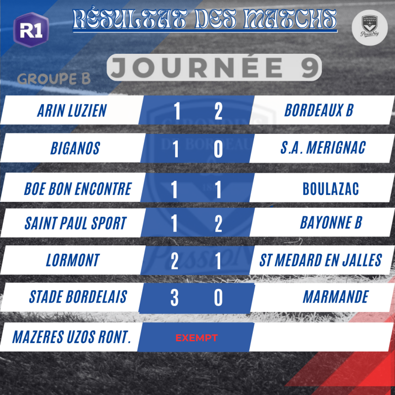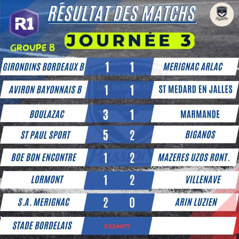 Résultats Matchs Régional 1 - Girondins de Bordeaux 2025/2026