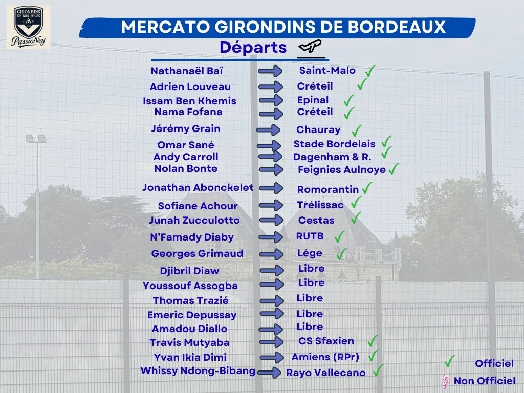 Plusieurs départs des Girondins sont maintenant actés... N'Famady Diaby l'a annoncé sur LinkedInFrance.
